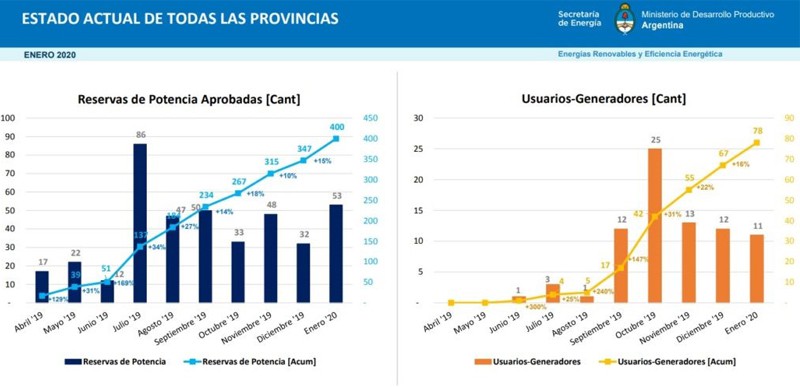 Allí se describe que “de un total acumulado de 400 proyectos con Reserva de Potencia Aprobada, 37 solicitaron el cambio de medidor y 78 ya completaron la instalación, cuentan con un medidor bidireccional y se convirtieron en Usuarios-Generadores”. En términos de potencia, existen «de 4.567 kW en proyectos con Reserva de Potencia Aprobada, 341 kW a la espera de la conexión del medidor y 912 kW ya se encuentran instalados y conectados a la red mediante un medidor bidireccional».