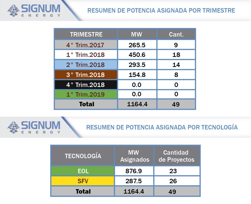 En las primeras cuatro subastas se adjudicaron 49 centrales de energías renovables (eólicas y solares), por 1.164,4 MW, y las últimas tres no hubo selección definitiva de emprendimientos.