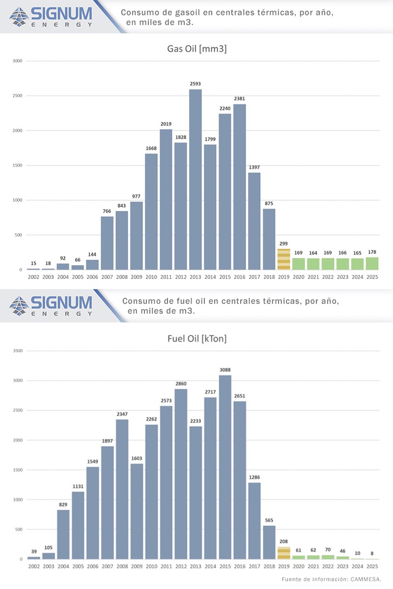 El año pasado, el consumo de combustibles líquidos alcanzó los 1,45 millones de m3 (875.000 m3 de gasoil y 565.000 de fuel oil). Con relación a esa cifra, el consumo proyectado para este año caerá hasta una tercera parte.